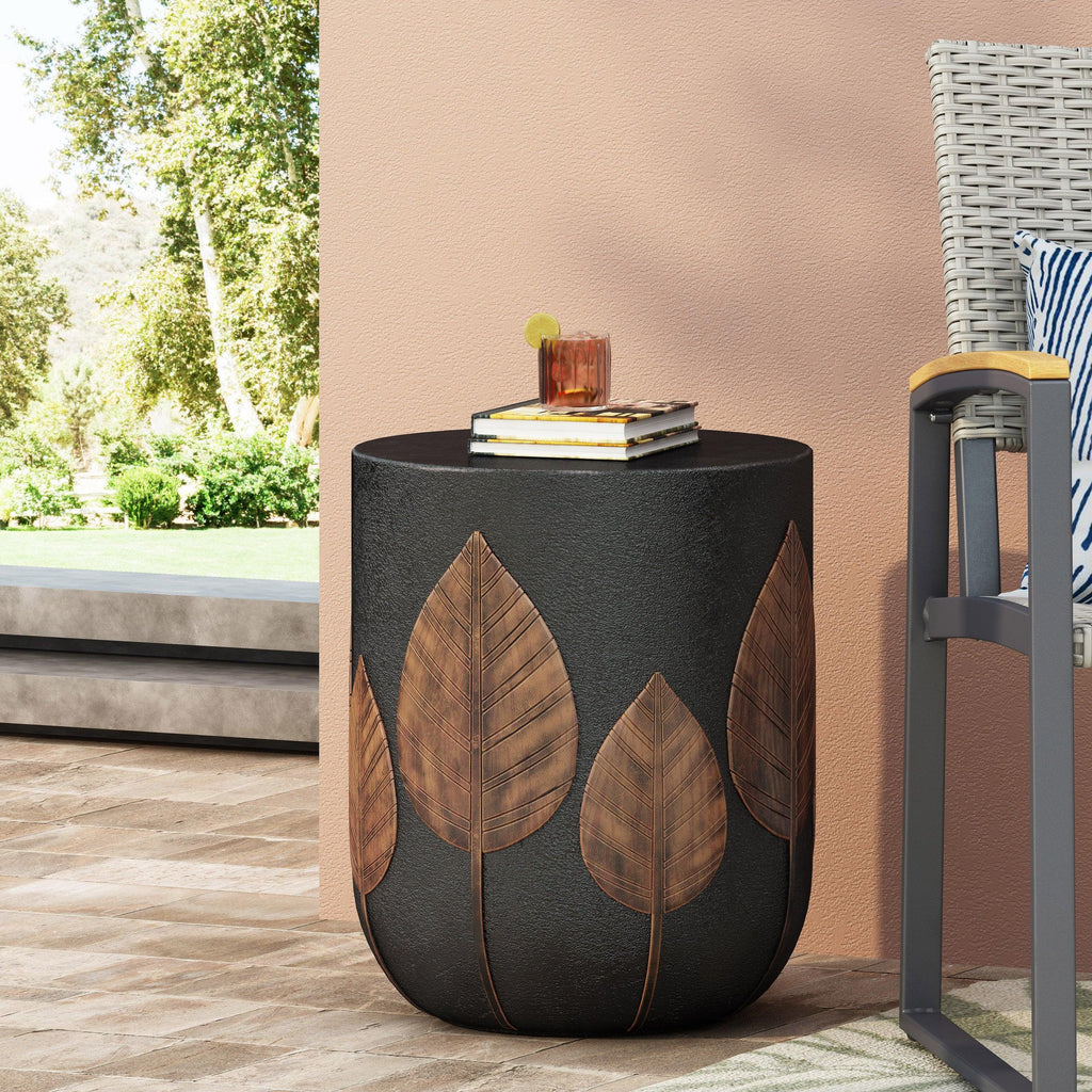 - A TOUCH OF PERSONALITY: Bring your outdoor space to life with our end table that features a rounded cylindrical structure, a stunning two-toned finish, and a gorgeous leaf pattern. With charming aesthetics, this side table will be sure to enliven any home.