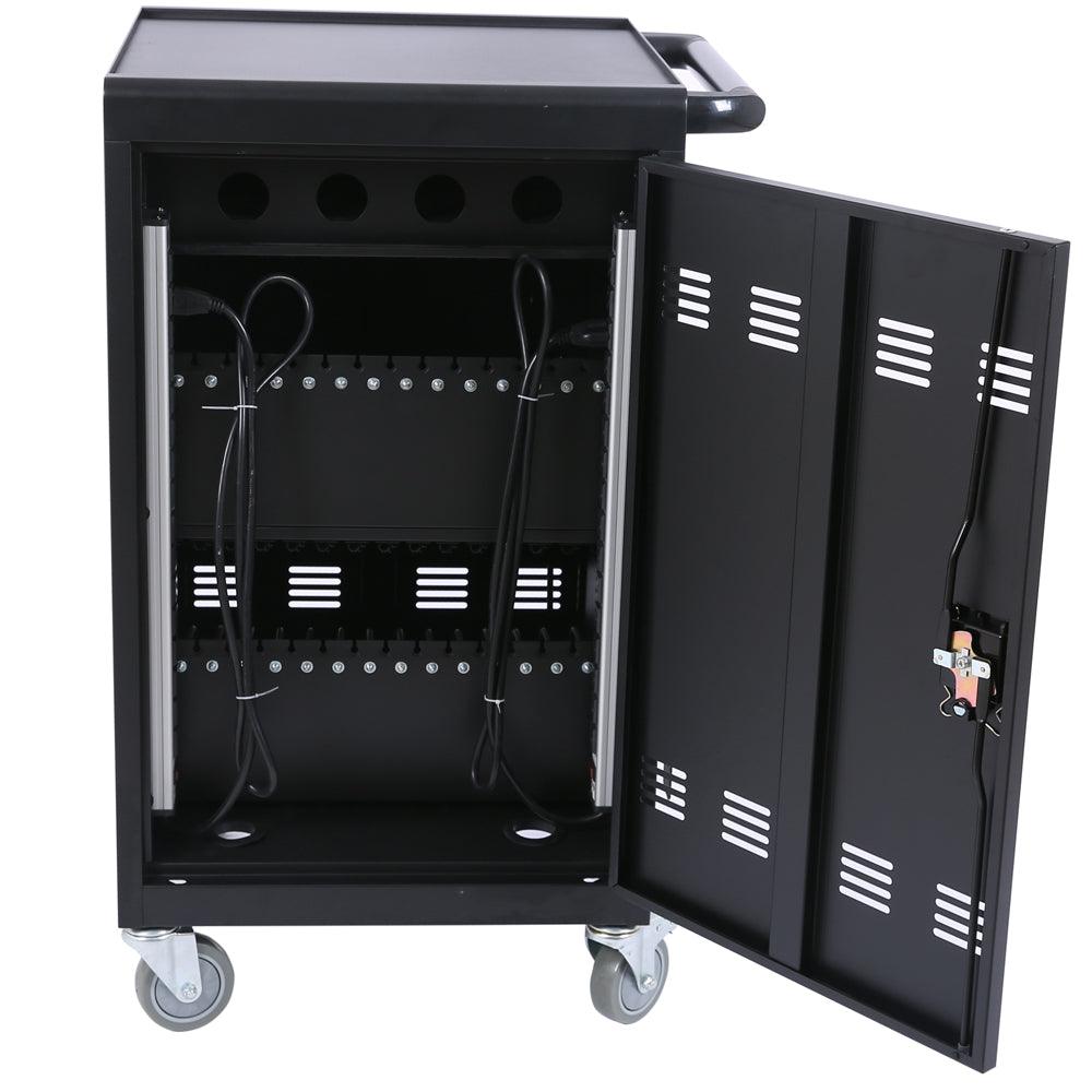 - LOCKING & SAFETY: charging cart with lock & key for the front and back door, will Protect your devices when it's in working or you are moving the cart. And 2 locking caster wheels will keep cart in place.