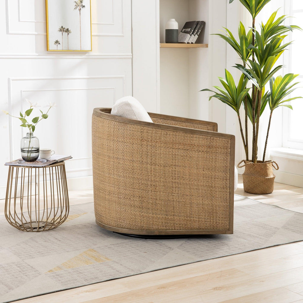 - The accent chair features rattan wrapped around the frame of the chair for a unique charm to enhance your decor, featuring elegant rattan details that add a touch of sophistication to any room.
