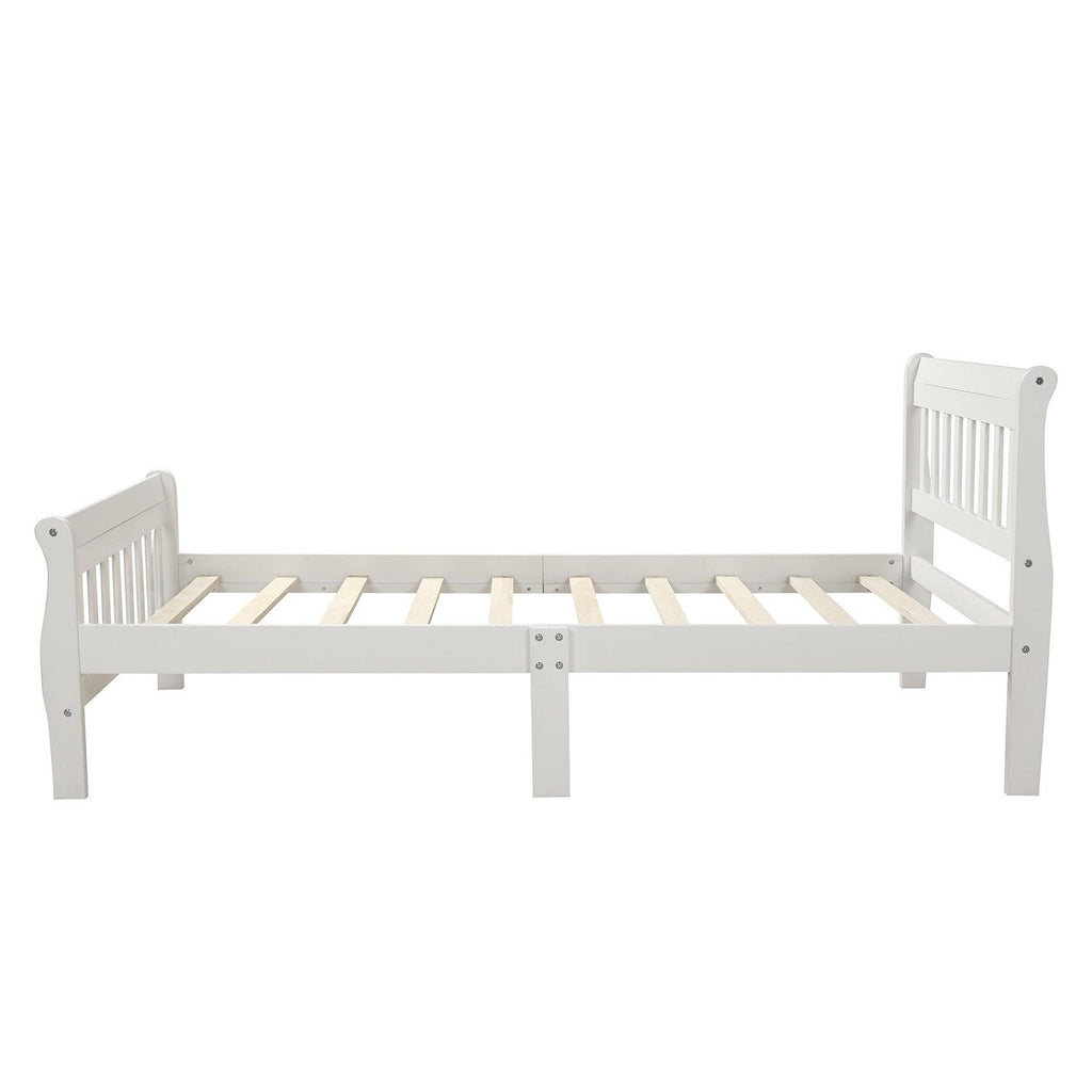 This Wood Platform Bed with Headboard & Footboard is a minimalist, stylish bed base that works well with a variety of decorating styles and makes it easy for you to beautify the look of your bedroom. The bed contains an integrated headboard & footboard. It fits most Twin-size mattresses and does not require a box spring. This bed frame is an excellent addition to any bedroom, do not miss the chance take it home.
