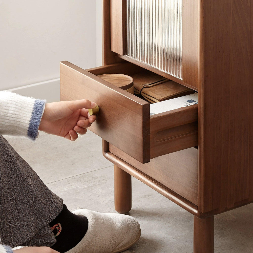 - Beyond Ordinary: Elevate your wall cabinet experience as you unveil the vintage glass door that adds character while guarding against dust. The harmonious blend of classic dovetail joints and steadfast solid wood slides ensures your bedroom storage cabinet's drawers operate smoothly, with each touch exuding timeless elegance. Discover the essence of refinement in your storage solution.