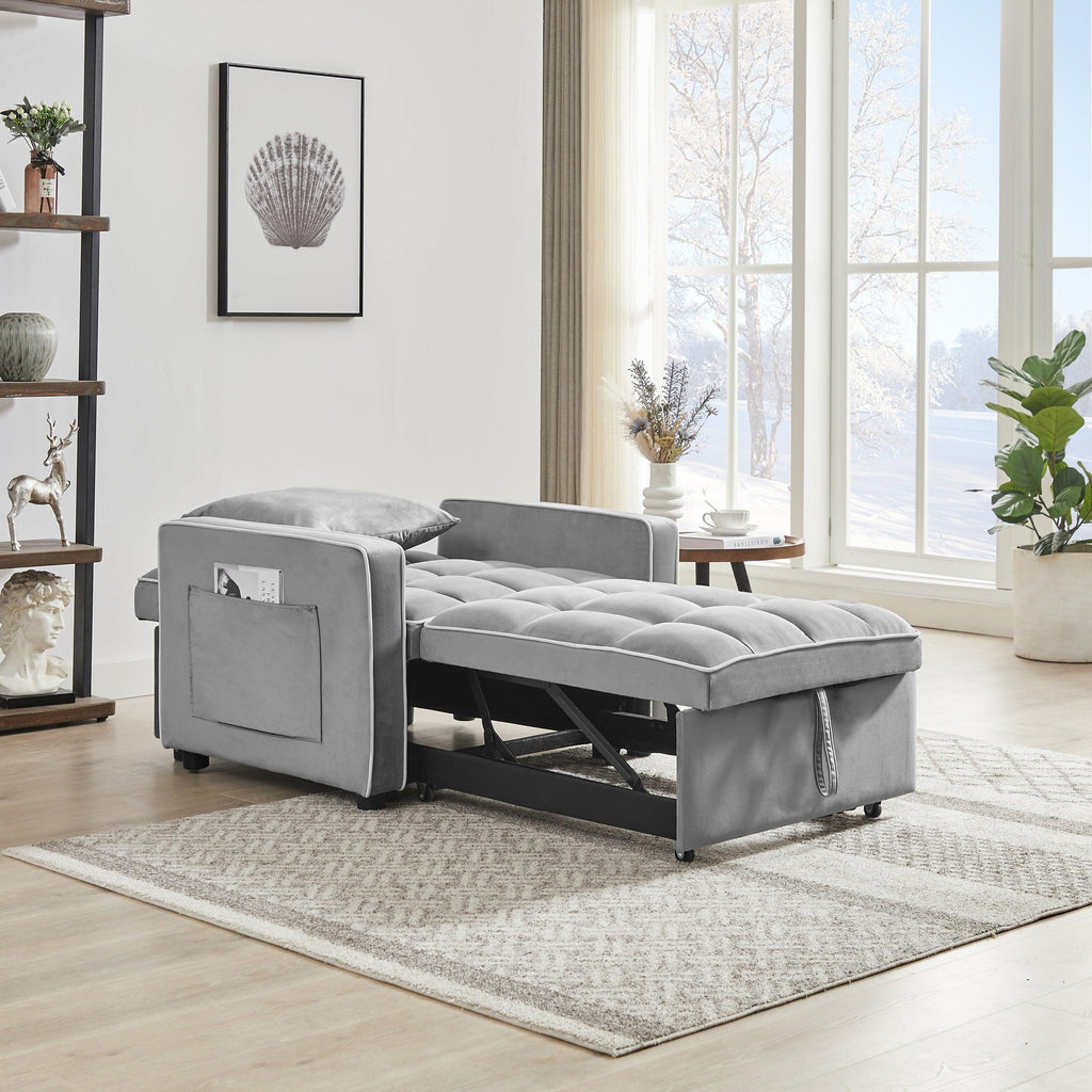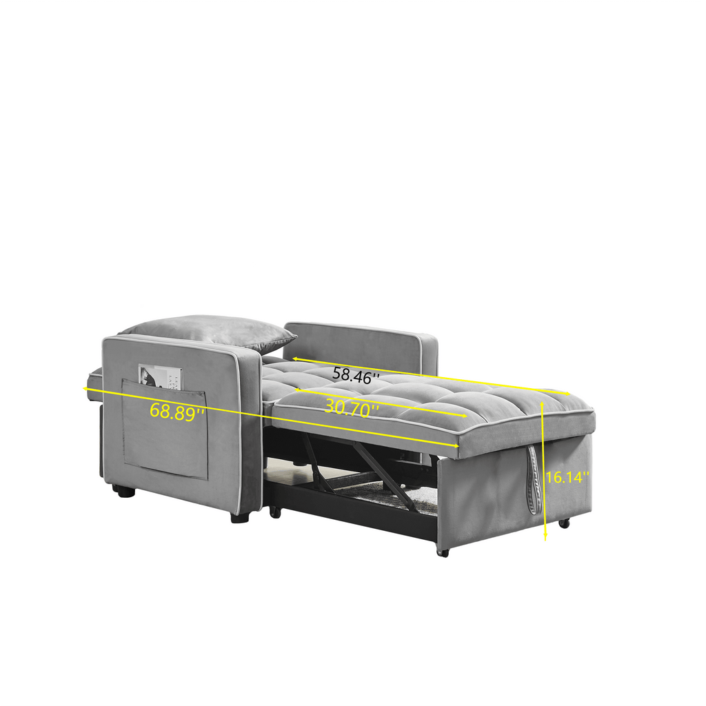 1.Elegant and luxurious decoration: an amazing velvet combination of its unique luster and elegance, for your home decoration to bring an incredible soft touch and exquisite texture. Tufted velvet and premium foam make the chair bed unmatched for softness and support, perfect for long reading or movie marathons 2.Convertible design: Normally, a berth chair can be used as a footstool. It can easily be turned into a sofa chair, recliner or bed. Even two people can put together a king-size bed, realize the desire to move the bedroom, no longer worry about One Hour Photo. 3.Modern style-low-key modern design makes folding stool sofa bed more simple and generous. The classic gray suits each kind of decoration style, the multifunctional use lets you be more convenient.