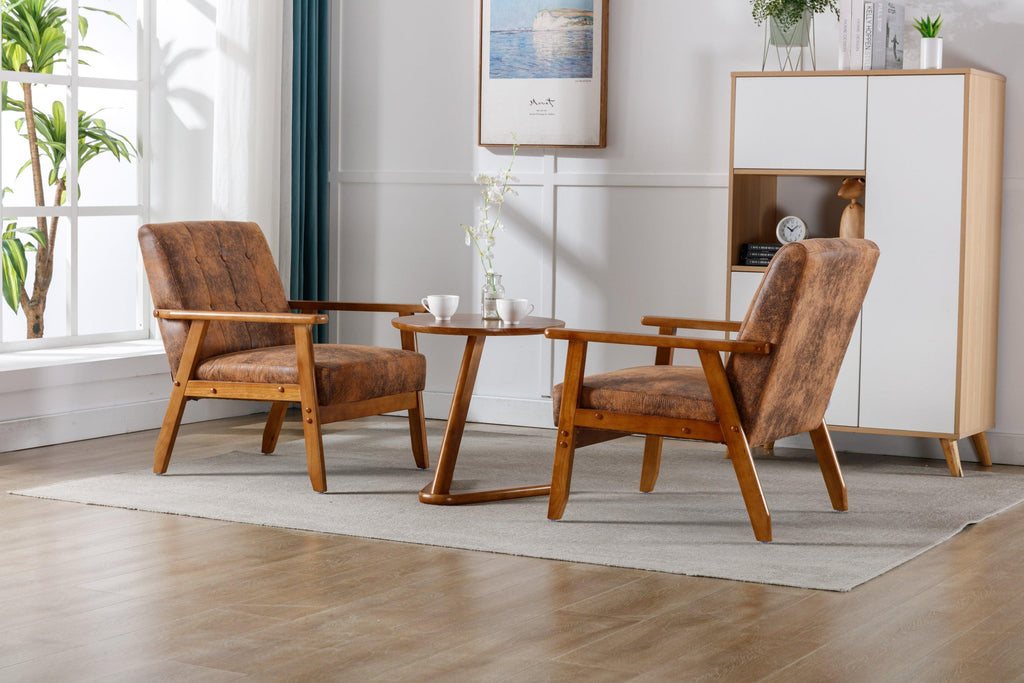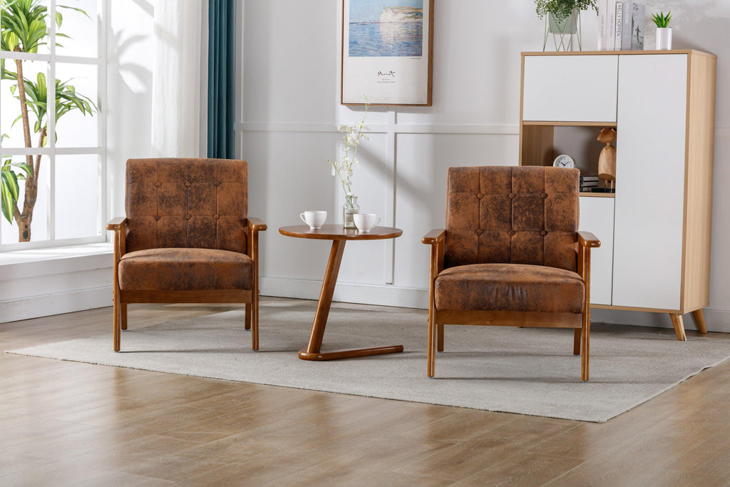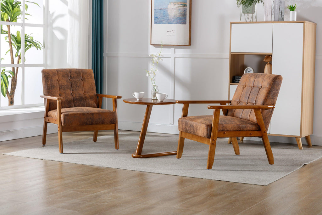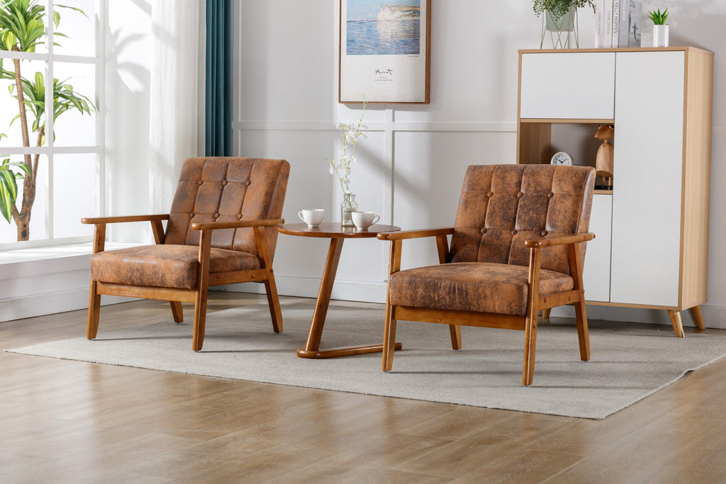 Mid-Century Retro Modern upholstered accent chair, soft fabric and solid wood armrests, combined with button-tufted design, perfect addition to the living room, bedroom, waiting room, guest room