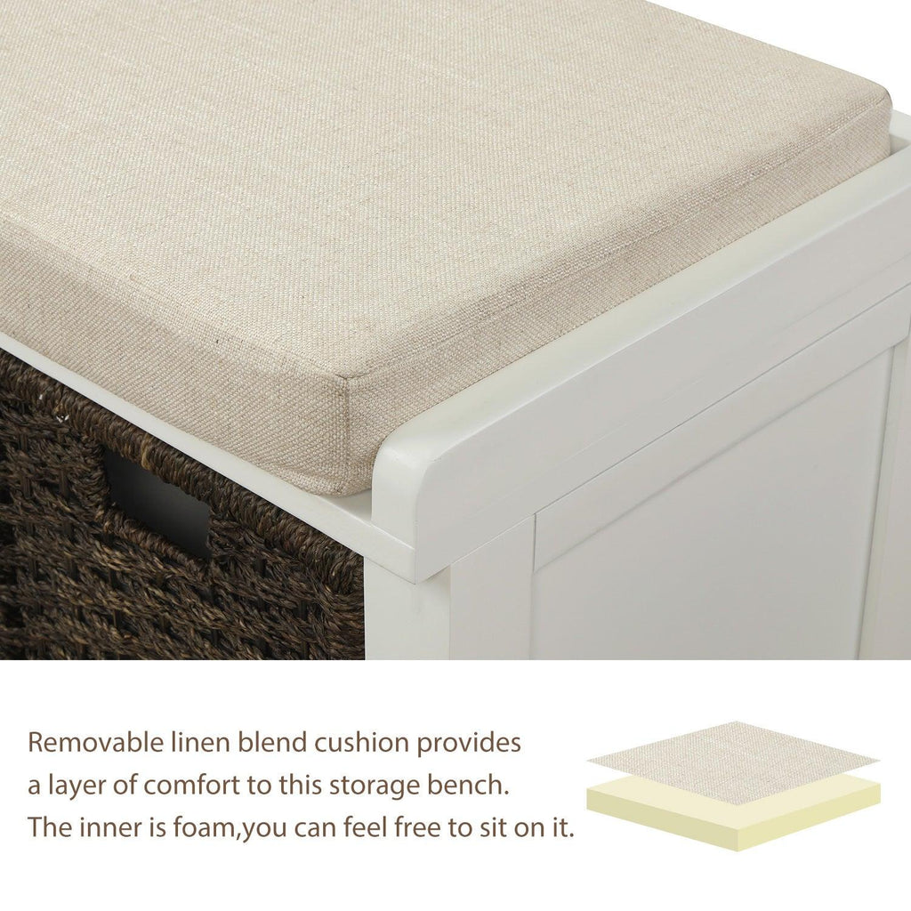- Removable linen blend cushion provides a layer of comfort to this storage bench.The inner is foam,you can feel free to sit on it.