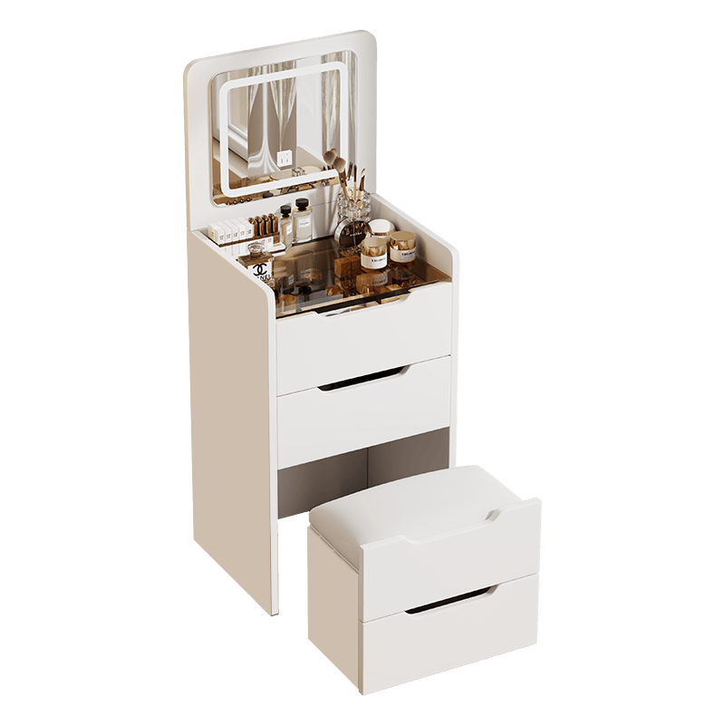 - Practical and Functional: With its integrated design, this vanity table not only provides a dedicated space for applying makeup, but also offers ample storage for your cosmetics and beauty tools. The makeup stool included in the set adds extra convenience and comfort.