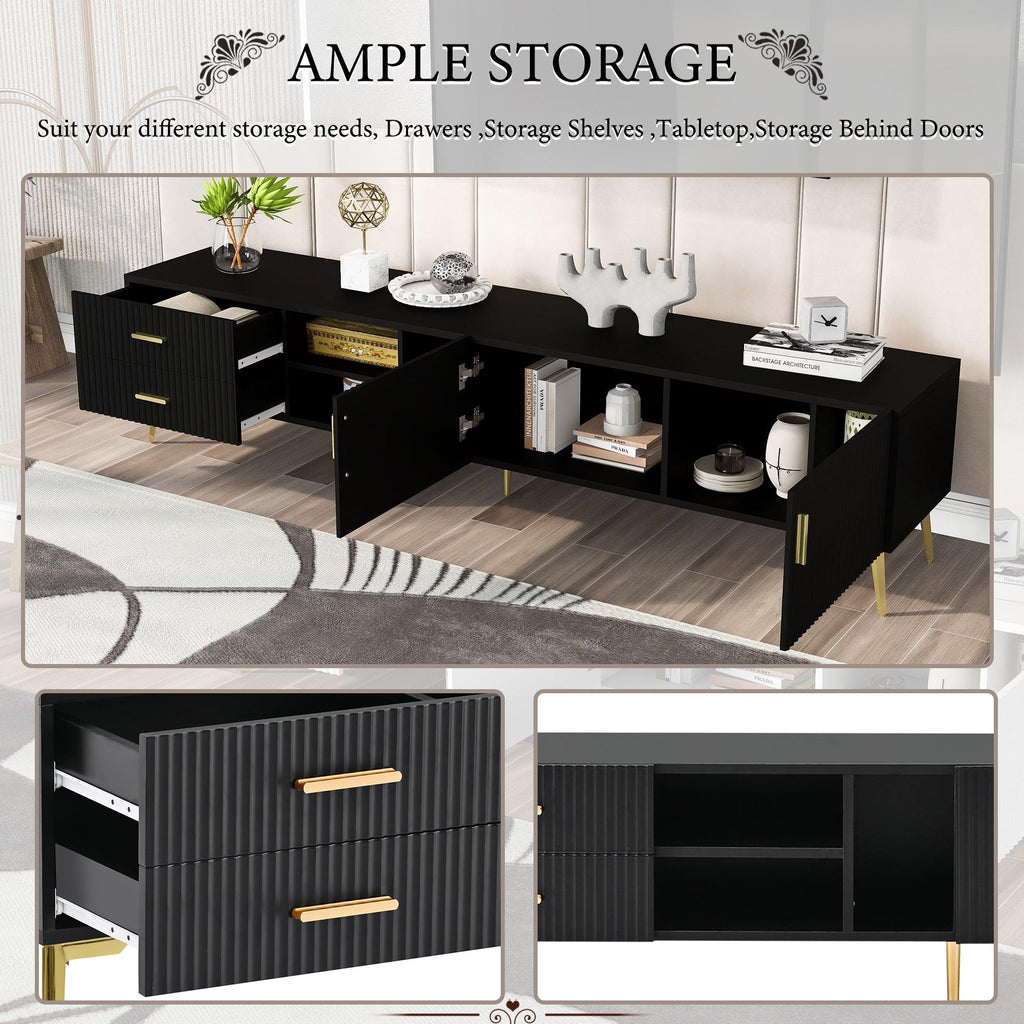 - [AMPLE STORAGE] The TV Stand comes with four invisible storages and three open shelves, providing ample space for all your media accessories.