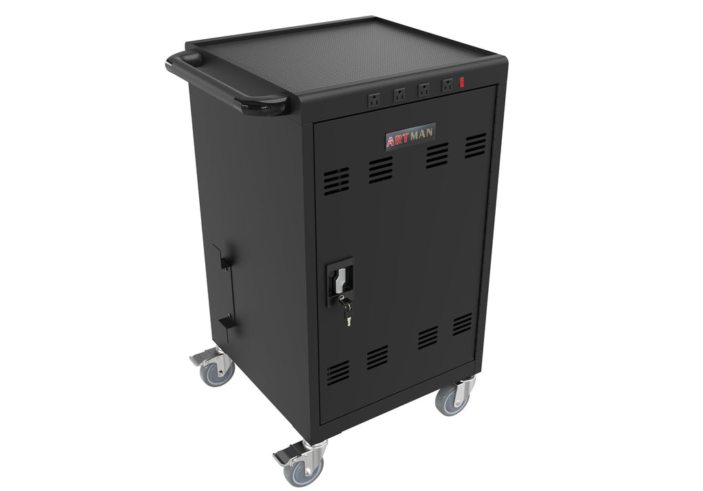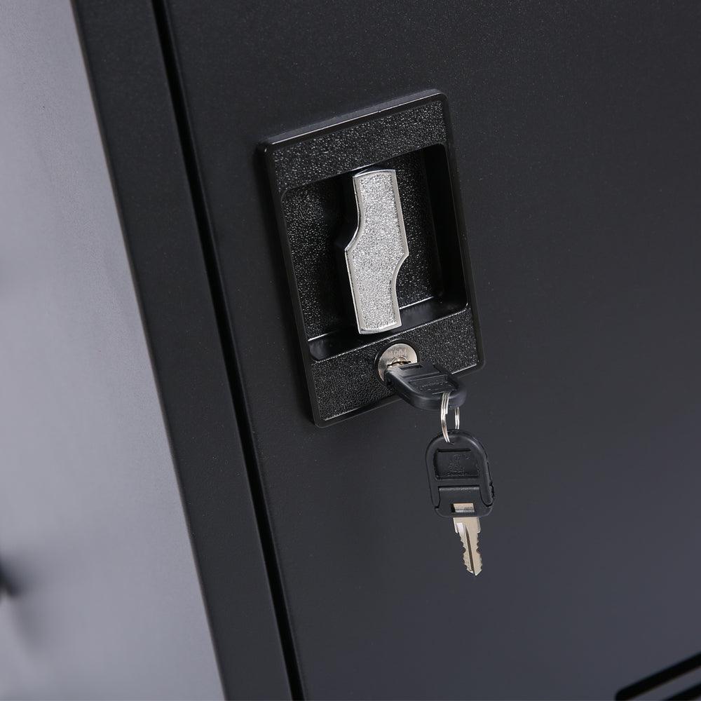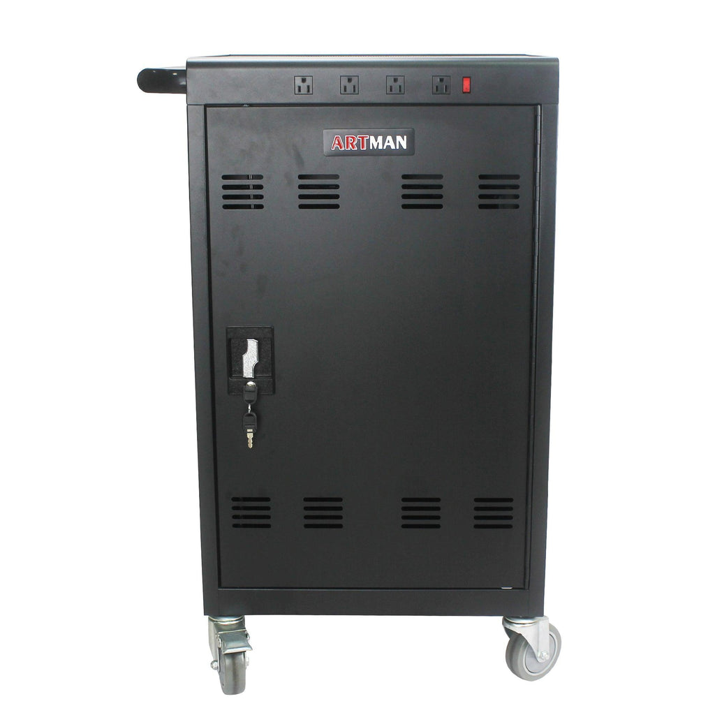 - LOCKING & SAFETY: charging cart with lock & key for the front and back door, will Protect your devices when it's in working or you are moving the cart. And 2 locking caster wheels will keep cart in place.