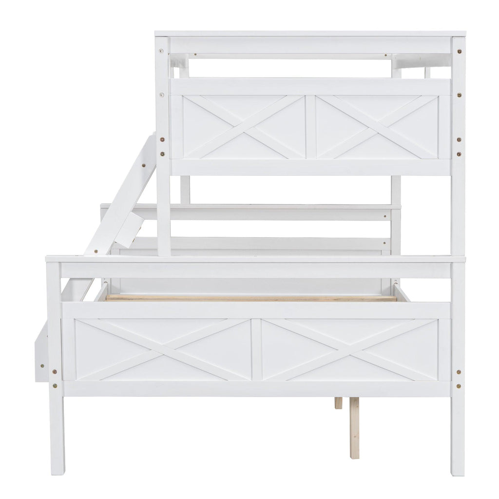 Twin over Full Bunk Bed with ladder, Safety Guardrail, Perfect for Bedroom, White