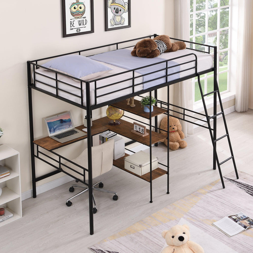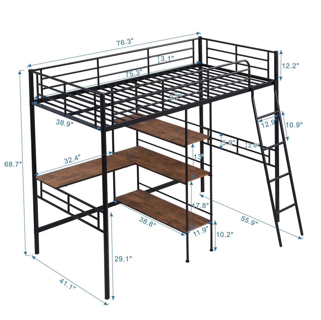 - ③ [Built-in Desk and Shelves] This loft bed making full use of space, coming with 3-tire shelves and a desk under bed, the bed creates a great personal workstation.