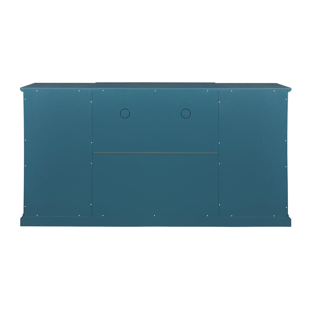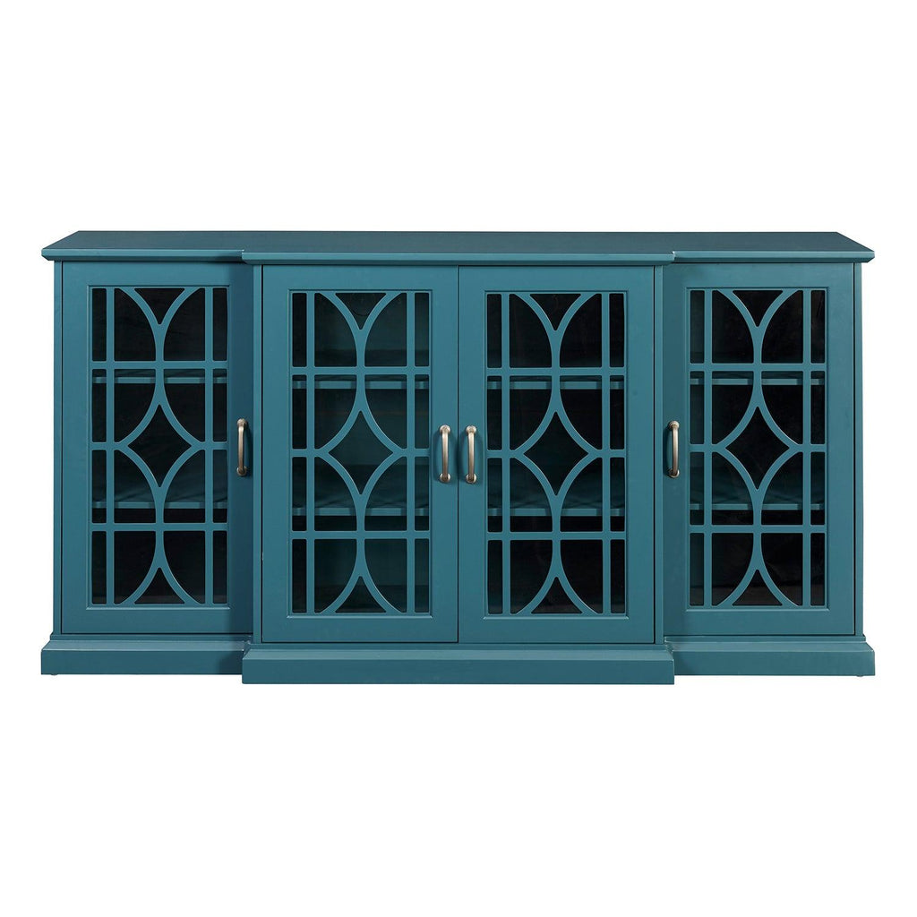 This Multifunctional Storage Buffet TV Cabinet made of high quality MDF wood board with spraying coated in teal blue finish. This cabinet comes with 4 visual tempered clear glass to keep your things out of the dust and easy to identify and reach. The decorative carved wood geometric overlay on cabinet doors adds beauty and enhances the artistic sense of the entire home.