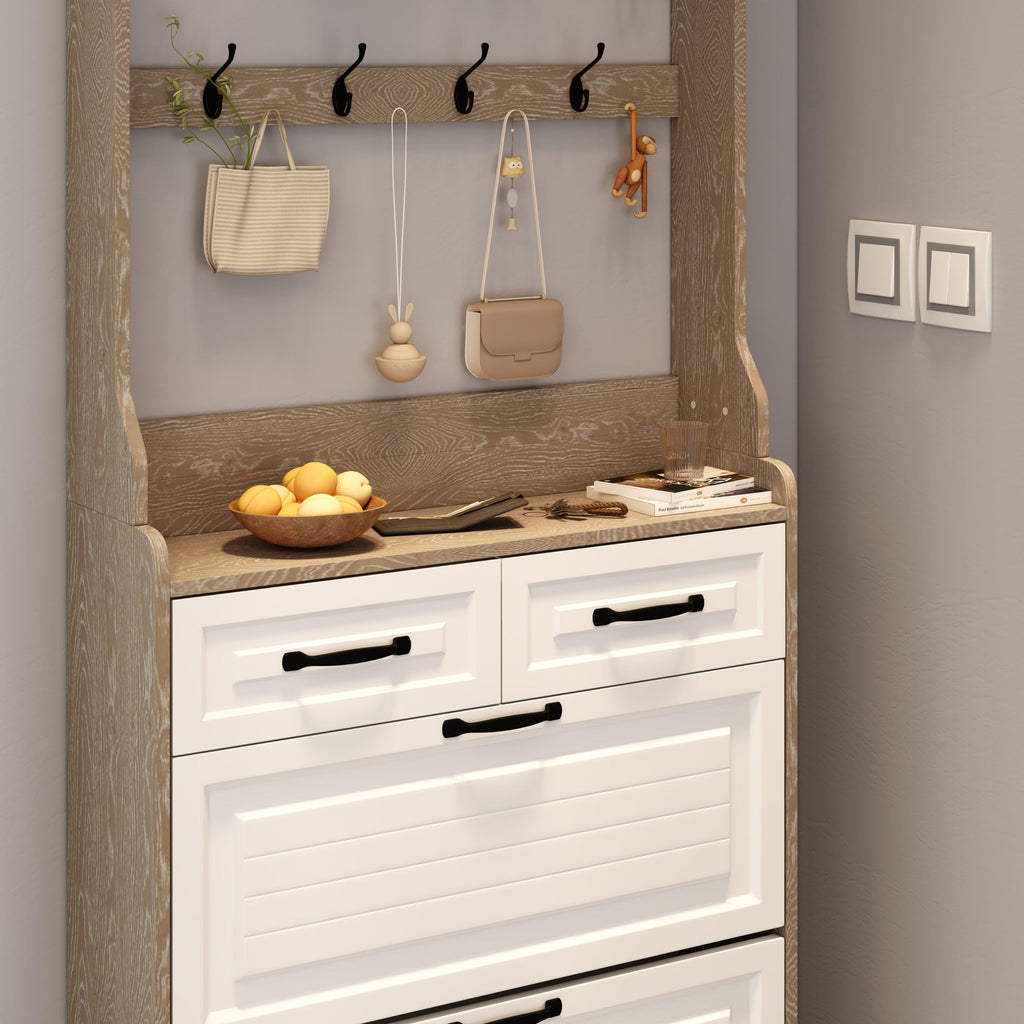 3 flip-drawers of the shoe cabinet provide ample storage space for your shoes.