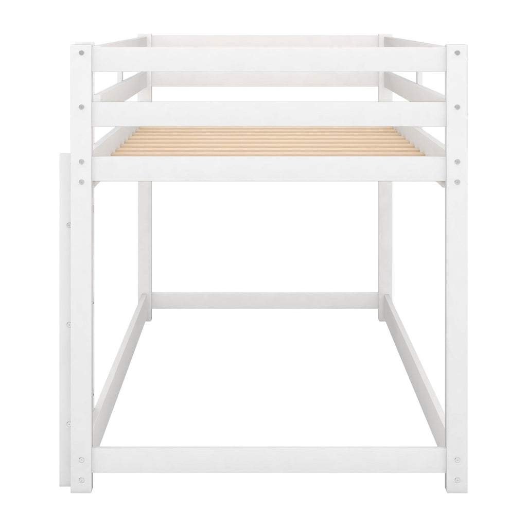 Twin over Twin Floor Bunk Bed with Ladder , White(Old SKU:WF281727AAK/WF286602AAK)