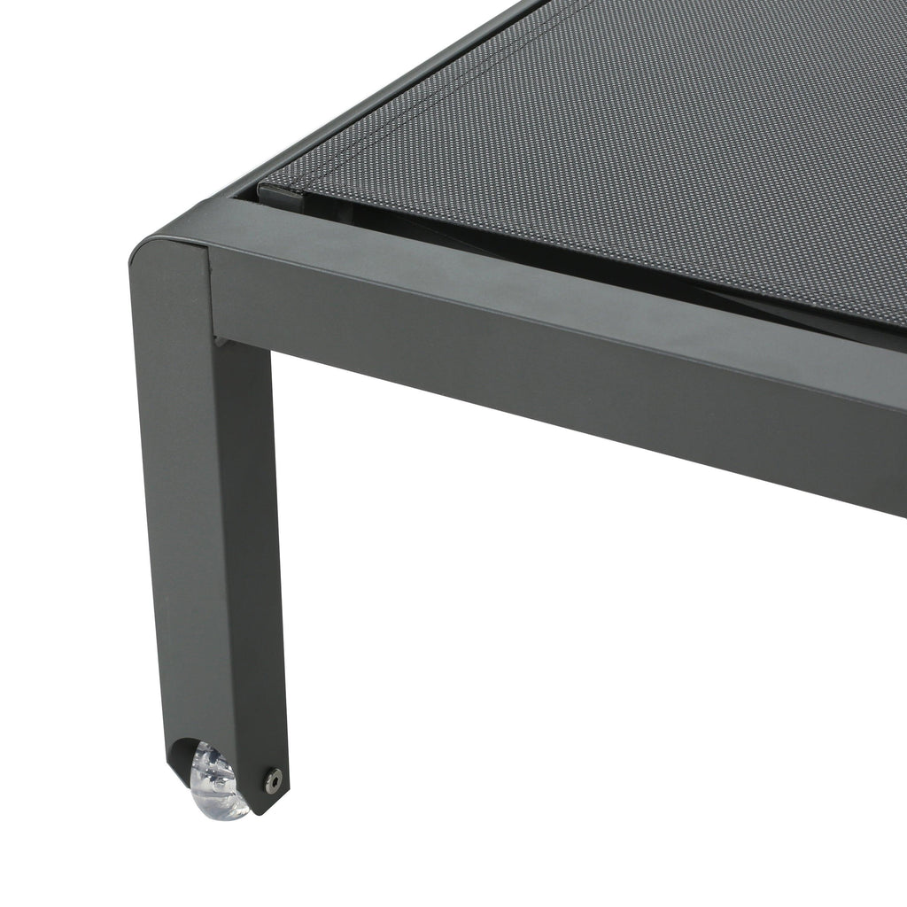 The chaise lounge chat set is crafted using a rust-resistant aluminum frame, ensuring longevity of the product.The seating area is made with outdoor mesh, offering a combination of support and flexibility.This unique material promotes air circulation and effectively dissipates body heat on warmer days