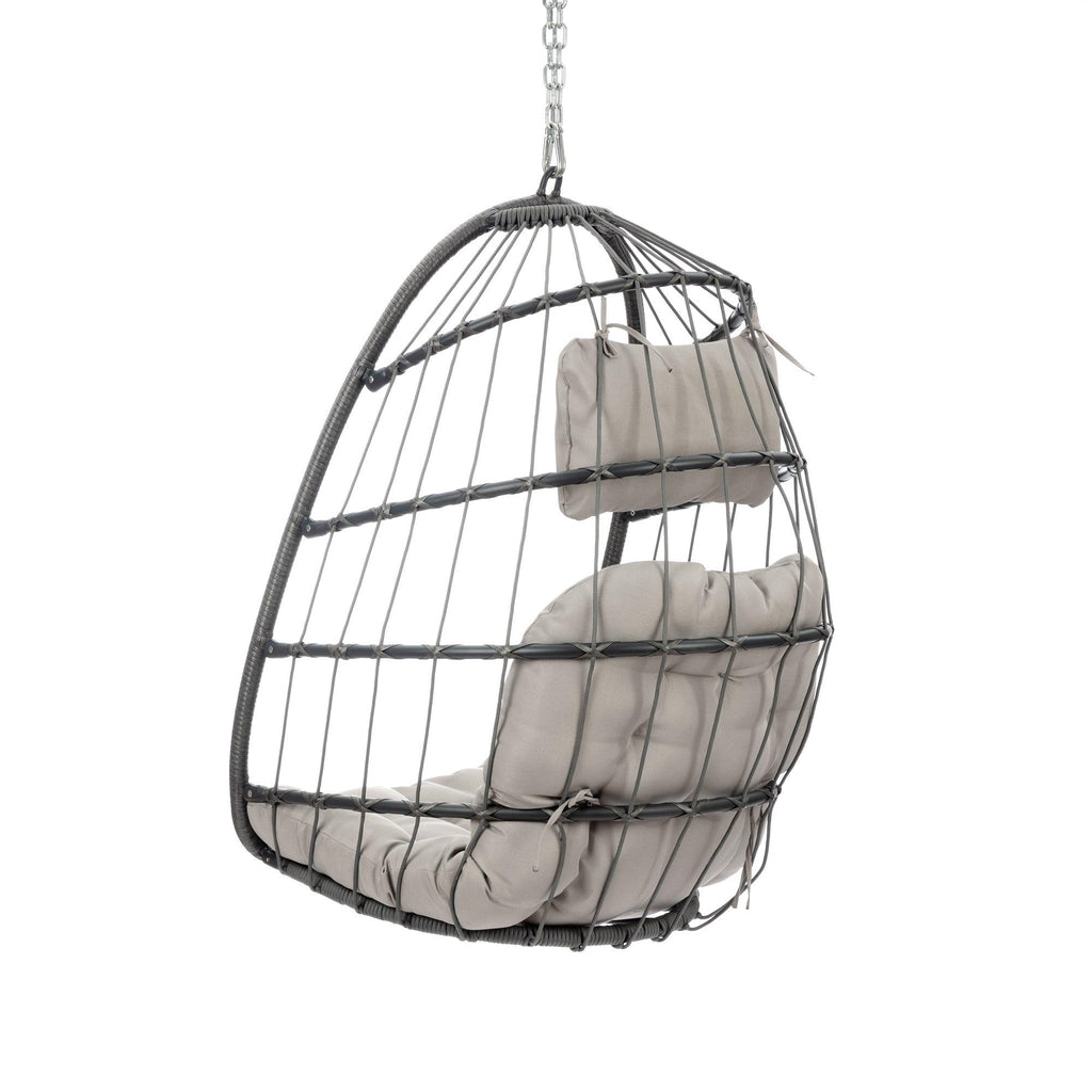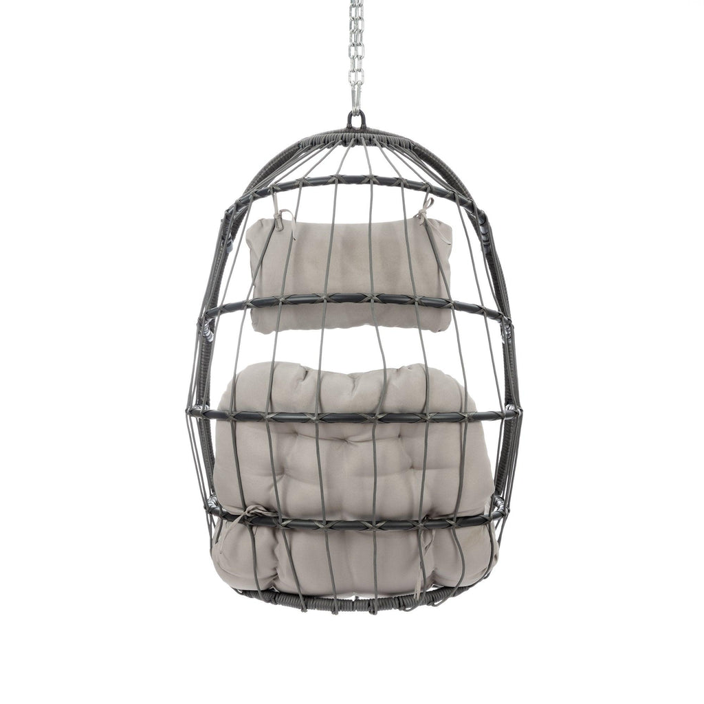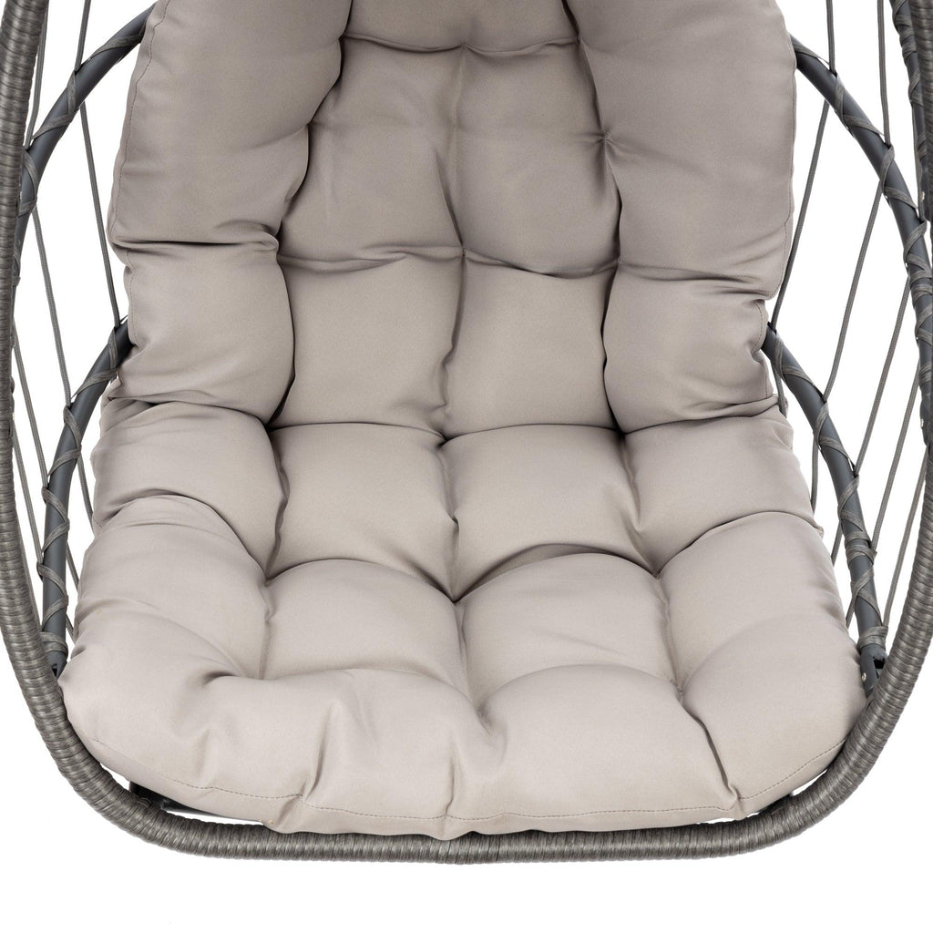 - 【STURDY AND COMFORTABLE】 Seat and frame of hammock chair is constructed of polyethylene rattan resin wicker wrapped around a aluminum frame for weather-resistant protection, strength and durability; back features nylon rope; Seat cushion and headrest pillow feature a polyester material and polyester fiberfill cores .