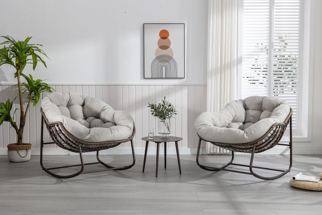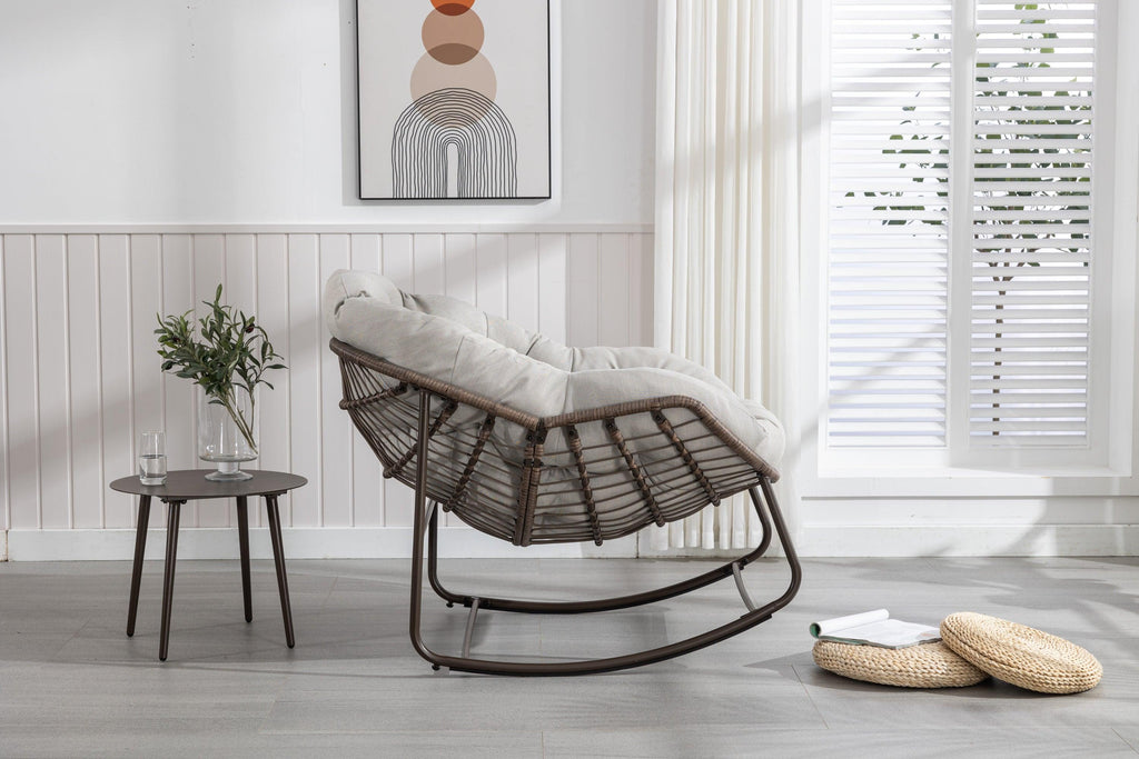Our rattan chairs are meticulously hand-woven with high-quality synthetic rattan material, the rattan is not easy to fade and durable. Enjoy the sunbathe with our oversized rocking chair and it will bring you a different experience.