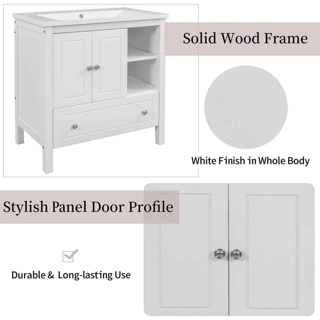 - Multiple Functions: Considering the humid environment in bathroom, this bathroom vanity has several different storage spaces. Double-door cabinet and one drawer is below. You can put soaps, towels, shampoos and other essentials in it so to keep your bathroom stuff away from dust.