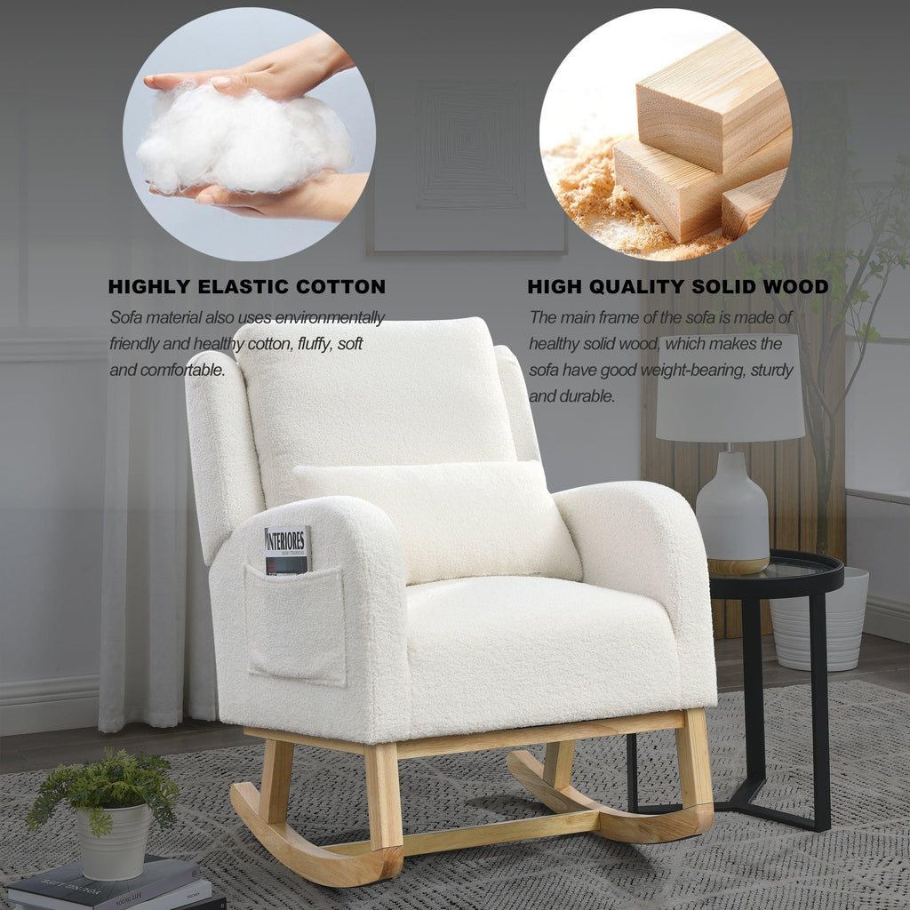 ★[Stylish design and practical pockets] The modern design and smooth lines make this children's rocking chair very stylish and chic. What's more, there is a large pocket on the side of each armrest, which is convenient for you to place magazines and TV controllers. A great choice for lazily slapping the pages of a book or sipping a cup of coffee