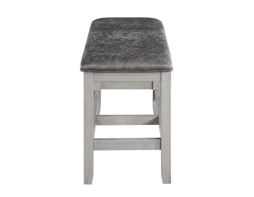 Relaxed, transitional styling in a neutral two-tone gray finish are the hallmarks of the comfortable Hyland Counter Dining Set. A Storage Counter Table anchors any dining area ably with a 20-inch insertable leaf to expand to 80-inches for seating of up to eight. The Stone Gray and Charcoal finish marries up with the oil-rubbed nickel hardware and vegan rawhide upholstered chair to create a fresh yet approachable dining set you will treasure for years