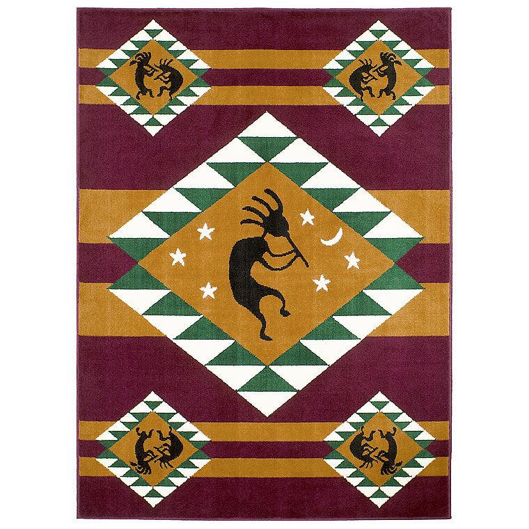 Introducing the Kokopelli area rug, perfect for adding a touch of Southwest flair to your home. Featuring a large Kokopelli symbol medallion, this rug symbolizes fertility and joy, bringing positive vibes to any room. Made of 100% polypropylene, this durable rug is perfect for high-traffic areas and easy to clean. With its beautiful Southwestern theme, this rug will add warmth and personality to any space. Bring a piece of the Southwest into your home with the Kokopelli area rug.